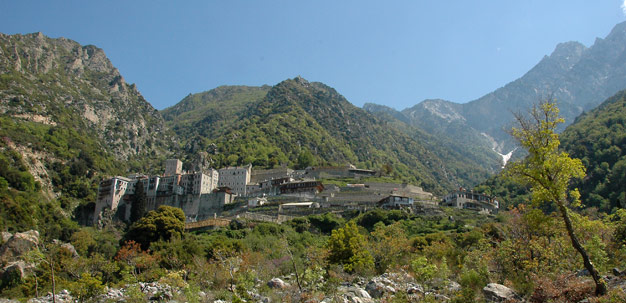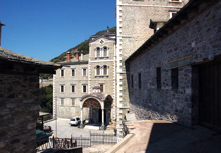 У XIV веку манастир је био словенски, а материјалну помоћ пружао је српски владарЂорђе Бранковић.  Године 1700.  владар Влашке, Константин Басараба, подигао је огроман пирг (кулу) у коме су смештене келије и црква. Године 1744. манастир постаје грчки. Манастир има облик четвороугаоника са високим утврђеним зидинама на чијем врху су изграђене келије. Величанствени једанаестоугаони Саборни храм посвећен је празникуСретења Господњег (25. фебруара по Грегоријанском календару). Међу светињама чувају се три иконе Мајке Божије. Једна је припадала цару Теофилу иконоборцу и његовој жени Теодори. Ову икону је цар – иконоборац у бесу бацио у огањ,али она није изгорела.
