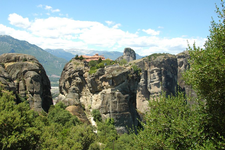 Манастир Свете Тројице се налази на стени која представља најатрактивнију и најкарактеристичнију слику Метеора. Пејзаж је неупоредиве лепоте. У првом плану је величанствена стена крунисана манастиром а у позадини је долина реке Пиниос са лебдећим врховима планинског ланца Пиндос. Са саме стене поглед је без премца. Страх помешан са чистим уживањем хвата посетиоца при погледу са руба стене доле на Тесалијску равницу.
