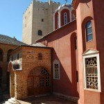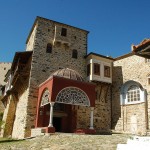 Манастир је окружен масивним зидинама са високим кулама, а у зидинама су смештене монашке келије на неколико спратова. Због тога он споља изгледа веома висок, чему доприноси и сам положај здања на високој стени. Манастир је подељен на два простора: у првом су смештене келије за госте, висока кула с малом црквом на врху и у њој – ризница. У другом делу налази се Саборна црква, трпезарија и звонара. Саборни храм посвећен је Преображењу Господњем. У манастиру се овај празник нарочито поштује. Храм је грађен у XIV веку од белог мермера, а године 1847. од истог мермера начињен је и под. У храму су очуване и фреске.