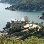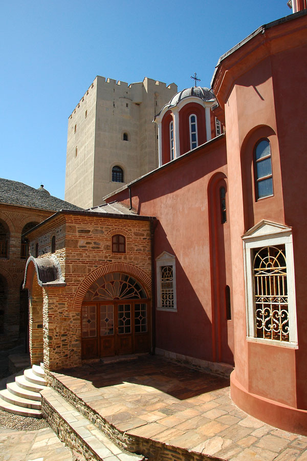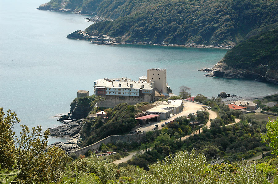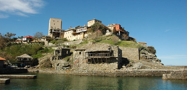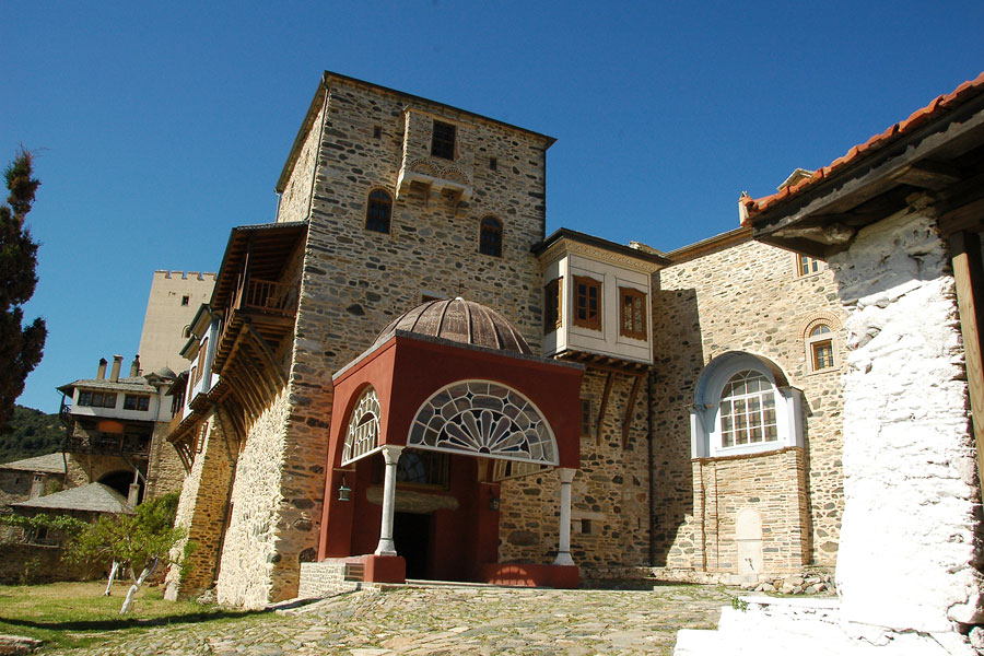 На удаљености од два сата хода од Кареје, на североисточној страни Свете Горе, на једној издвојеној стени крај мора, налази се манастир Пантократор (Сведржитељ). Основао га је византијски војсковођа Алексије Стратопедарх 1363. године заједно са својим братом Јованом, такође царским великодостојником. Након што су га Турци запосели и разорили, манастир је обновио молдавски властелин Станло око 1536. године.